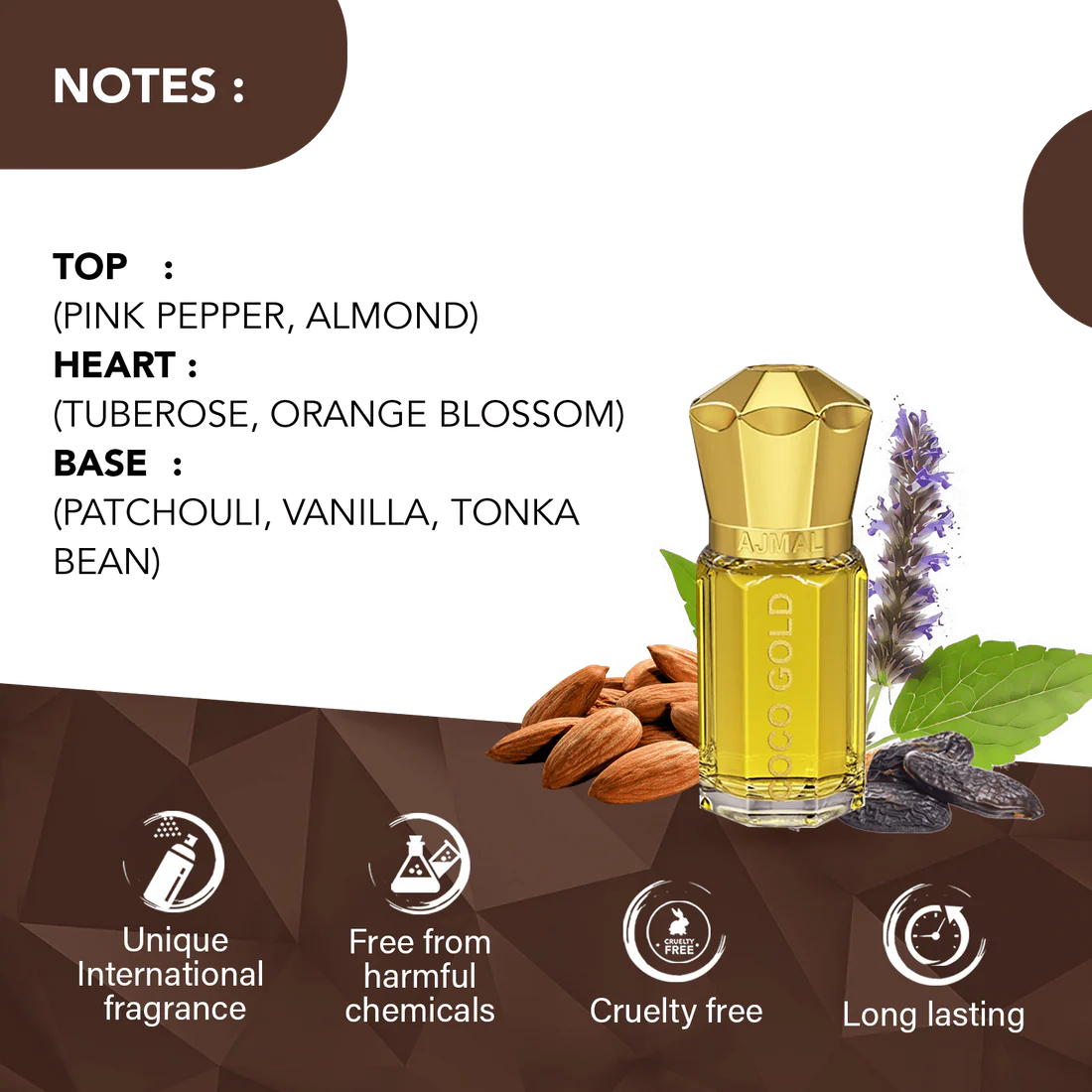 Perfect for daily wear, special gatherings, or whenever you want to feel elegantly refreshed, COCO GOLD is a sweet attar that captures the essence of modern luxury in a skin-friendly, alcohol-free form.