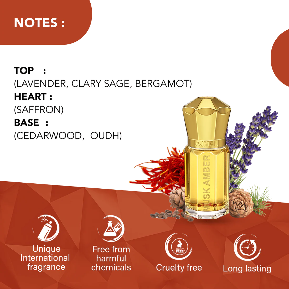 Perfect for everyday wear or formal settings, this Ajmal attar for men leaves a lingering impression of strength and refinement. For those in search of an authentic musk attar for men, MUSK AMBER offers a classic profile elevated by Ajmal’s mastery in blending deep, long-lasting notes.