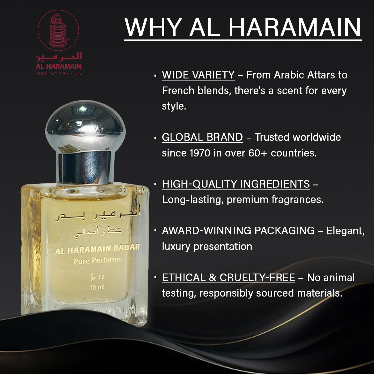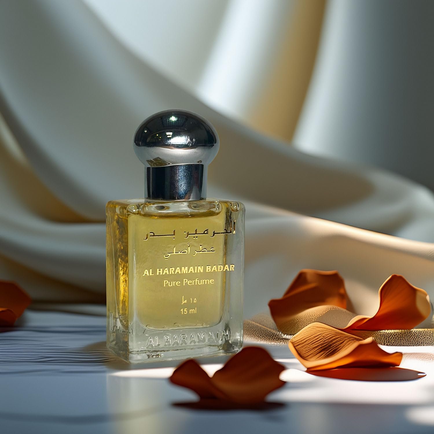 Badar by Haramain 15ml Roll on Attar is a Oriental fragrance for both women and men. The fragrance features Musk, Candy Sugar, Cedar wood, Patchouli, Amber, Water Lily, Orris, Rose.