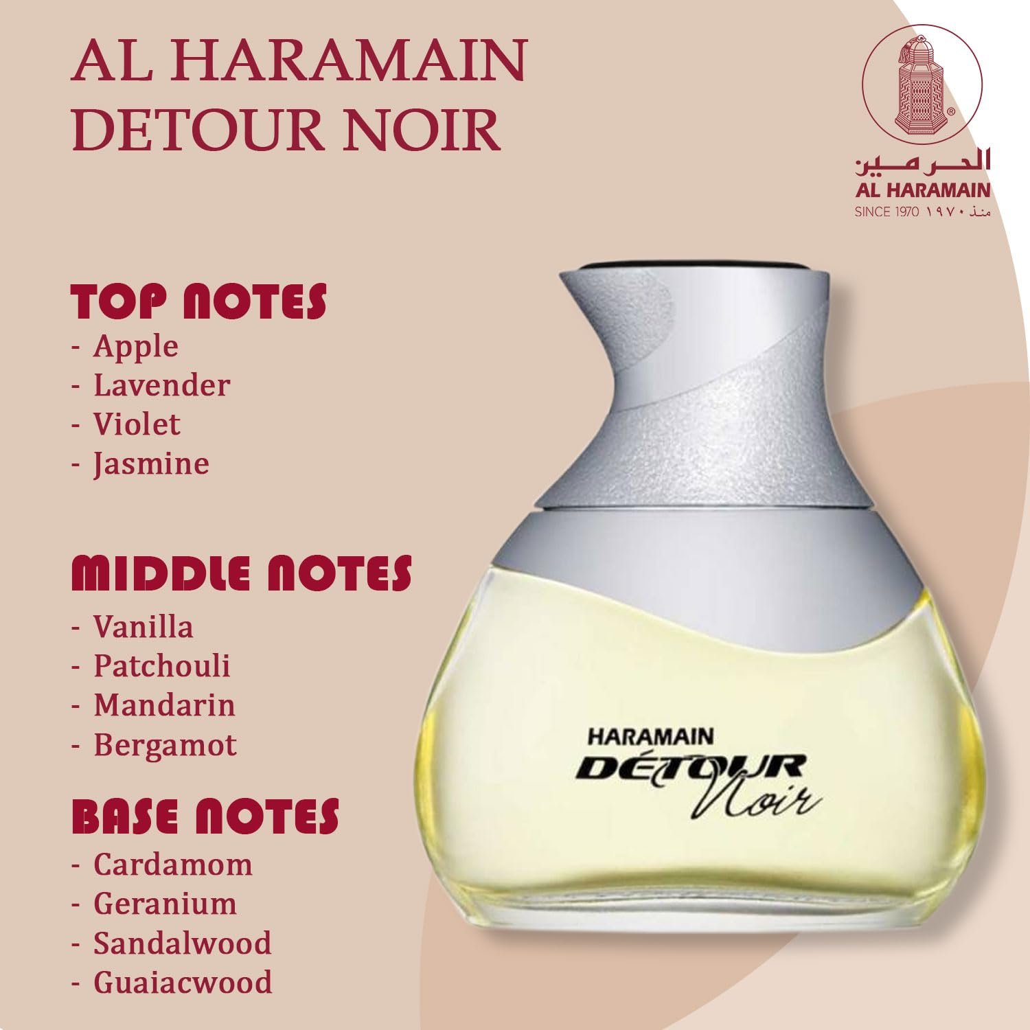 Al Haramain Detour Noir Eau De ParfumSpray 100ml.Its floral-woody heart and ambery-musky base lend a vibrant, warm, and poised character that empowers you to take on even the most extreme adventures. No matter where your adventure leads you, you’ll feel just as amazing at the end as you did at the beginning.