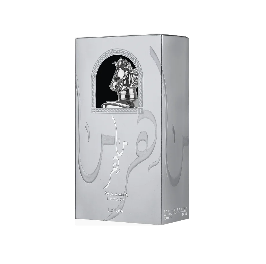 Maahir Legacy by Lattafa Perfumes is a fragrance for men. Top notes are Lime, Mint, Grapefruit, Lavender and Pineapple; middle notes are Black Pepper, juniper berry, Rosemary, Geranium and Frankincense; base notes are Ambroxan, Vetiver, Oakmoss, Cashmeran and Tonka Bean.
