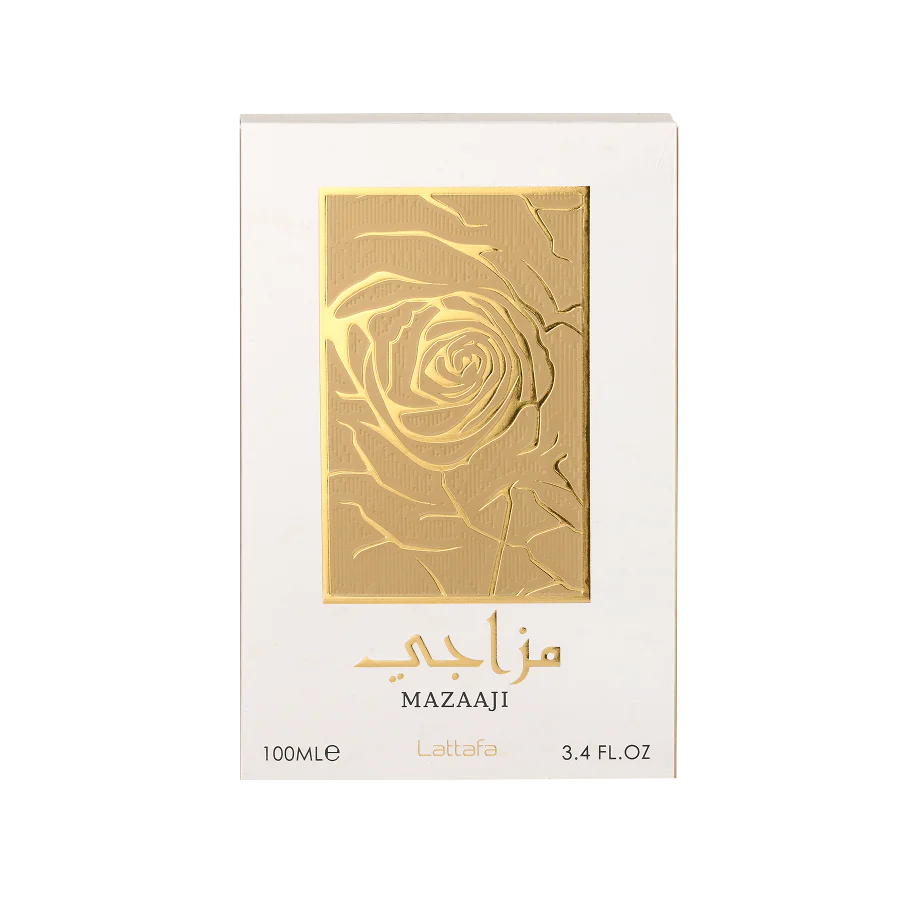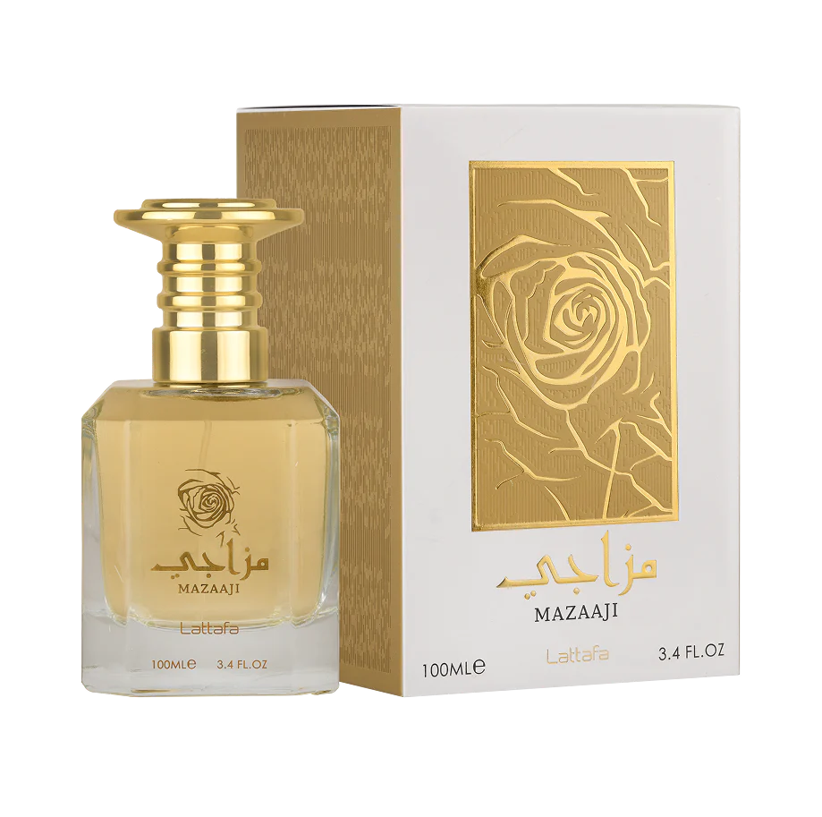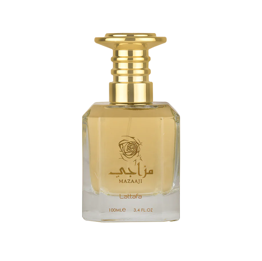 Mazaaji by Lattafa Perfumes is a fragrance for women. Top notes are Orange Blossom and Mandarin Orange; middle notes are Bulgarian Rose, Turkish Rose and Jasmine; base notes are Patchouli, Vanilla, Sandalwood and Amber.