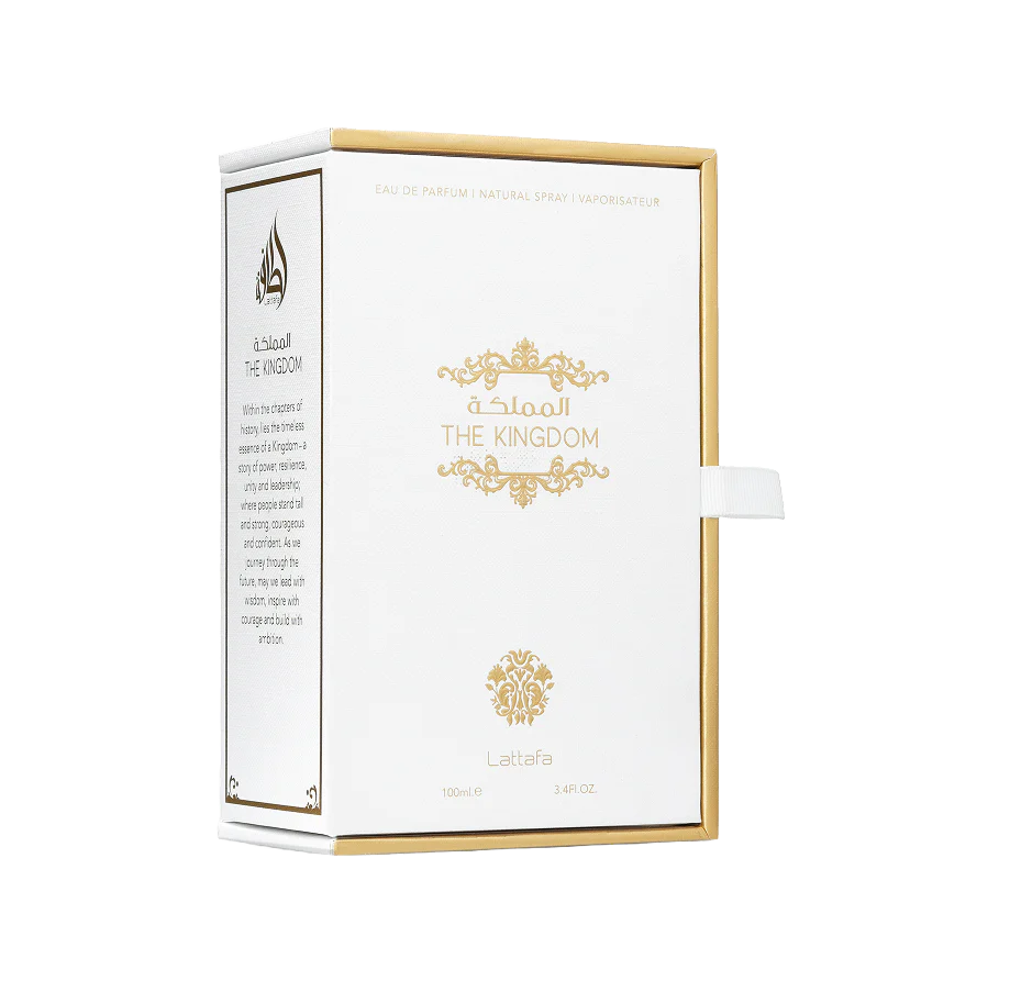Lattafa The Kingdom For Men Long Lasting Unisex Eau De Parfum -100ml is a masterpiece of olfactory craftsmanship. A captivating blend of Sage, Lavender, Mint introduces a radiant and enchanting opening. The heart of the fragrance carries Tobacco, Vanilla, Orange Flower, bringing a harmonious balance of warmth and refinement. Finally, the base settles into a sensual embrace of Benzoin, Tonka Bean, Labdanum, adding a creamy, warm, and long-lasting depth.